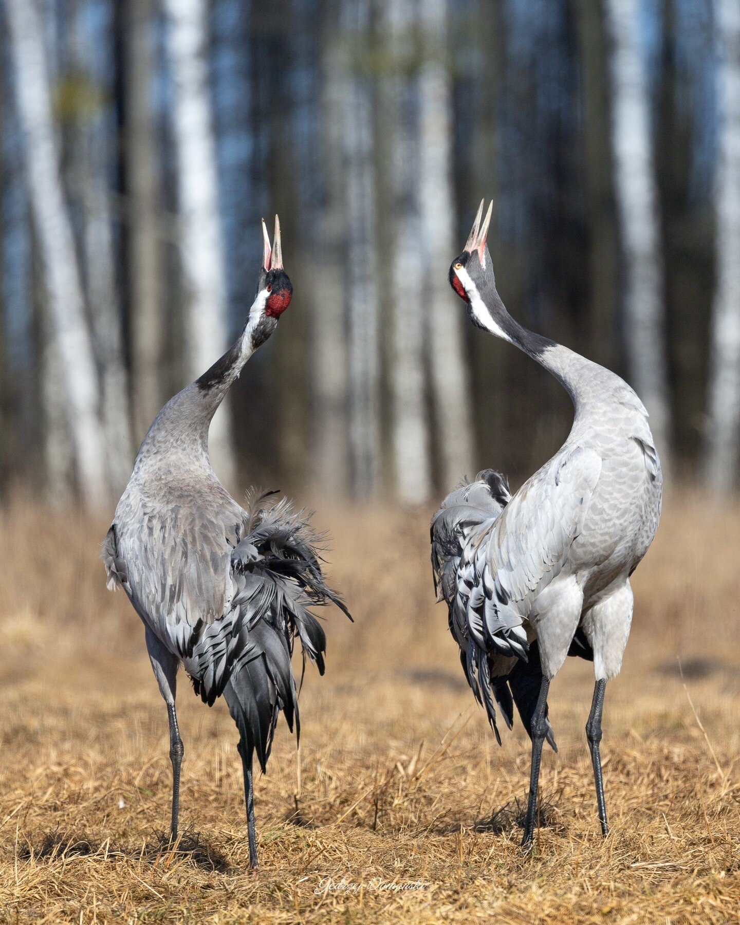 żurawie podczas zalotów, sóweczki, ptaki drapieżne
